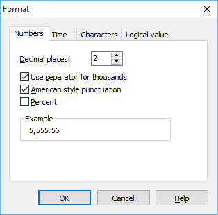 American dotting | If this field is activated, a comma is used as the 1000 separator and a point as the decimal separator (example: 5,000.00 instead of 5,000.00). |