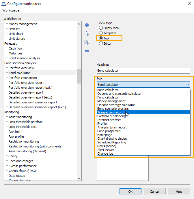 Note that the term "tools" also exists in the configuration of workspaces. In addition to the tools described above, which can all be accessed via the "Tools" tab in the ribbon, you will also find other worksheets of the "Tool" view type. A prominent example is the entry screen for transactions.