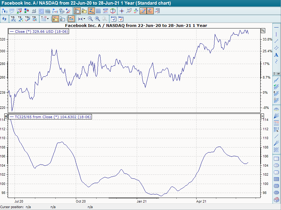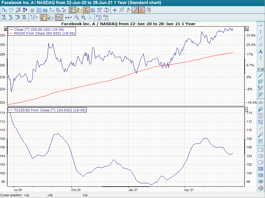 The trend confirmation indicator, abbreviated TBI, is based on two moving averages and should not necessarily be seen as an independent technical study. To set the indicator, you should also read the chapter Moving average .
