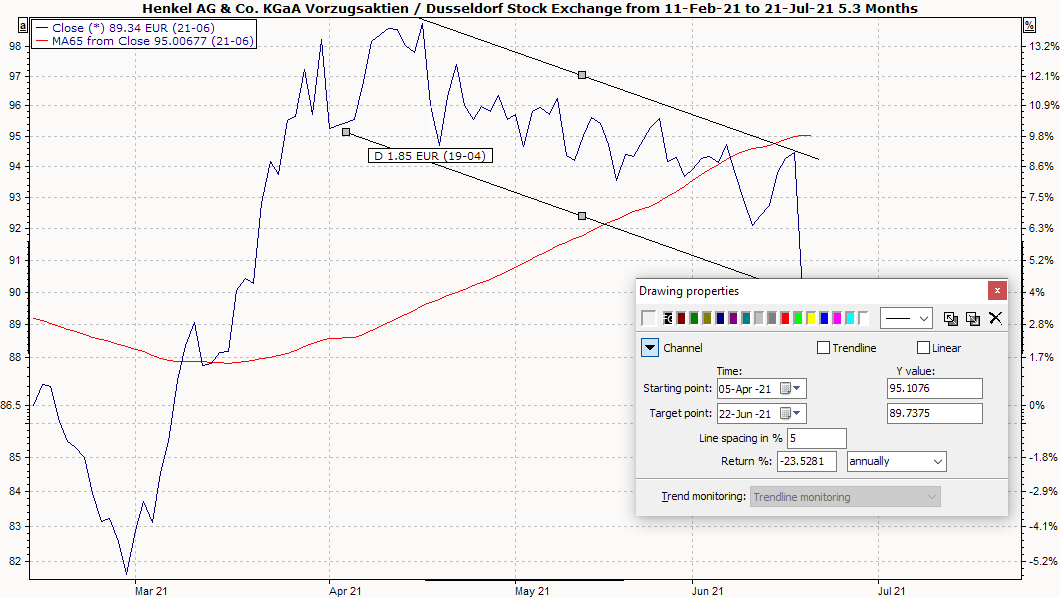 You can "draw" the trend channel precisely by entering the exact data for the course of the channel in the fields under "Time" and "Y value".
