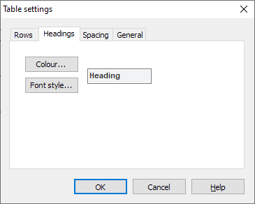 To change the color and font of the headings in the table, select the OPTIONS... command in the menu of the "General options" icon on the "Table" tab. The "Table settings" dialog box appears, in which you can edit various basic settings.