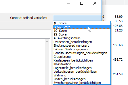 When you enter a new formula, the Infront Portfolio Manager automatically includes it in the "Parameter" field and assigns the default parameter value if necessary. You can find more information on assigning variables in the sections Setting default values - The parameter dialog and Assignment of parameters.