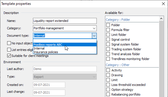 You can also create new document types directly in the Infront Portfolio Manager via a detour: