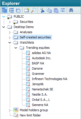- Like all other securities folders, you can change watchlist folders at any time, for example by adding securities using drag & drop, renaming the folder or moving it to the recycle bin.