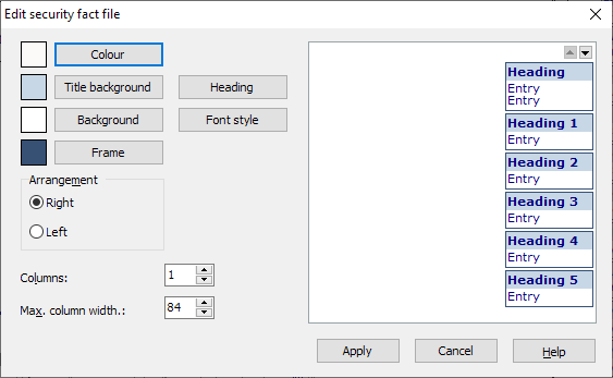 To edit the security note, select the command SECURITY NOTE on the "Chart" tab in the menu of the "Edit chart elements" icon. The "Edit securities profile" dialog box appears.