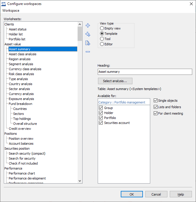 This configuration is only possible with the "Configure workspaces" system right. An overview of the available authorizations can be found at List of rights.