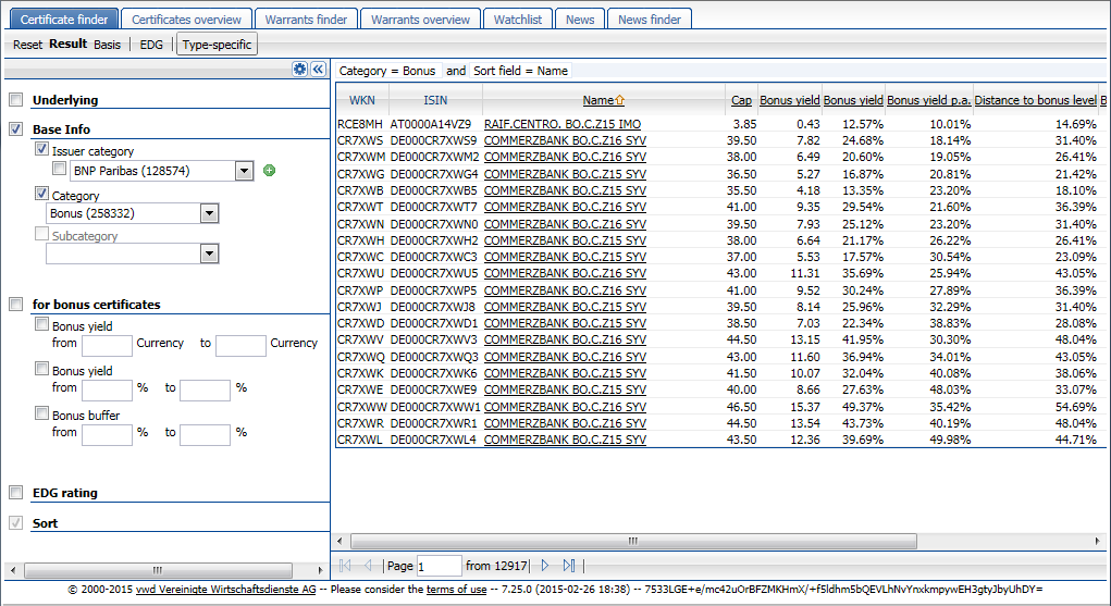 Certificate Finder in Finder Derivatives (Online)